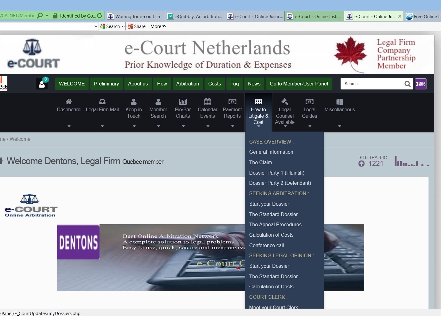 e-Court NL. will re-shape the future of Dutch Litigation. Forces transforming the legal industry promise the emergence of new models, such as e-Court that will allow clients to reap huge efficiencies. It took our IT development team five years and in excess of $3 million investment and growing, to develop a database which unravelled the legal complexities yet adheres to strict Dutch legal laws. To our knowledge there is to-date no privately funded organization which is able to match e-Court's innovative database and other structures. We can handle a minimum of #20,000 cases simultaneously; Welcome to the Netherlands's most exciting non-governmental arbitration. Let us show you how !